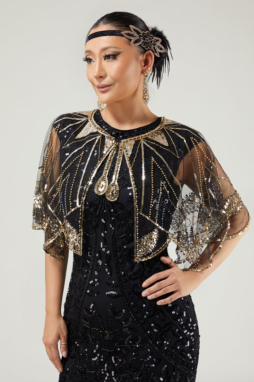 Kralenzwarte paillette Vrouwencape uit de jaren 1920