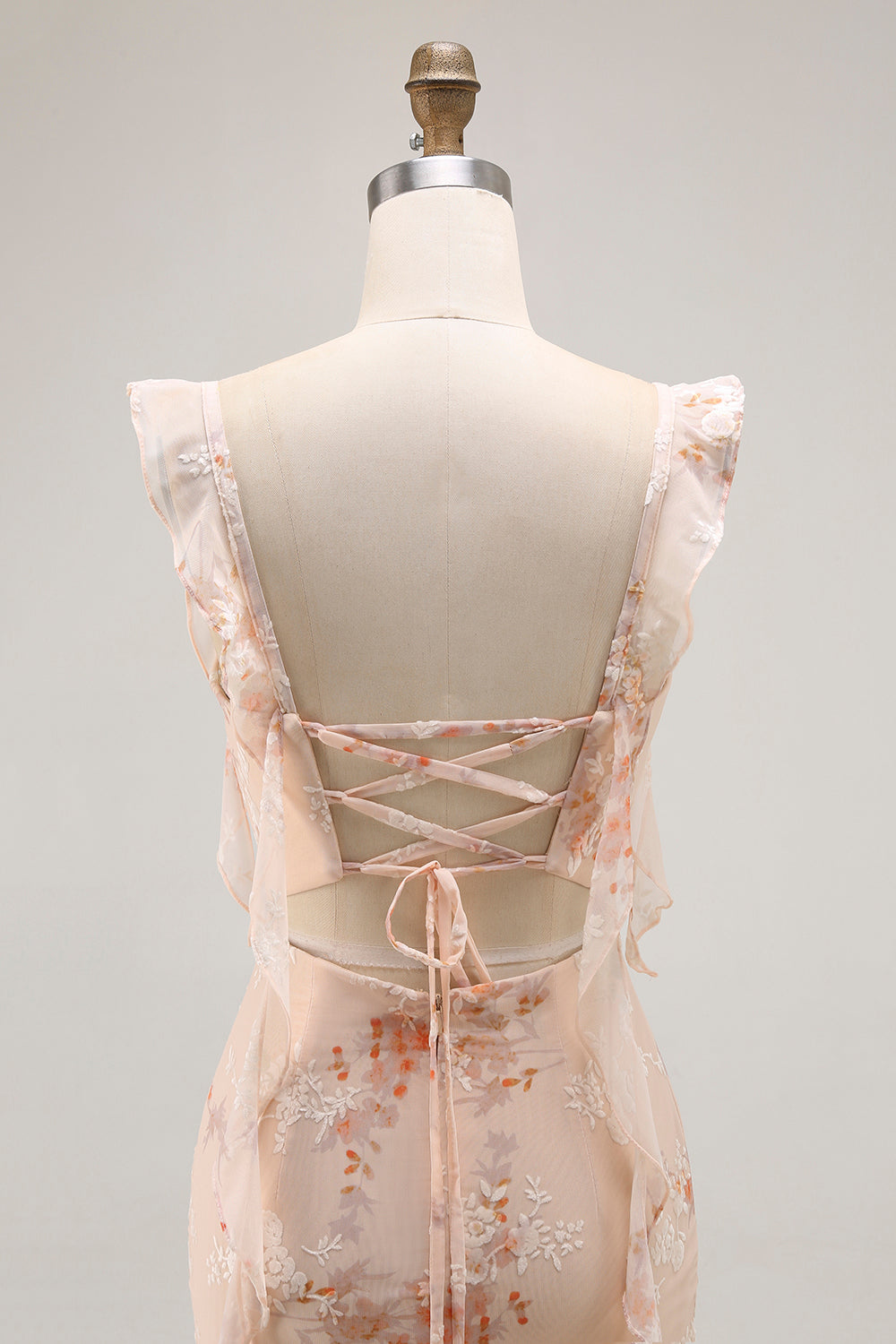 Champagne bloemenschede lange bruidsmeisjesjurk met split