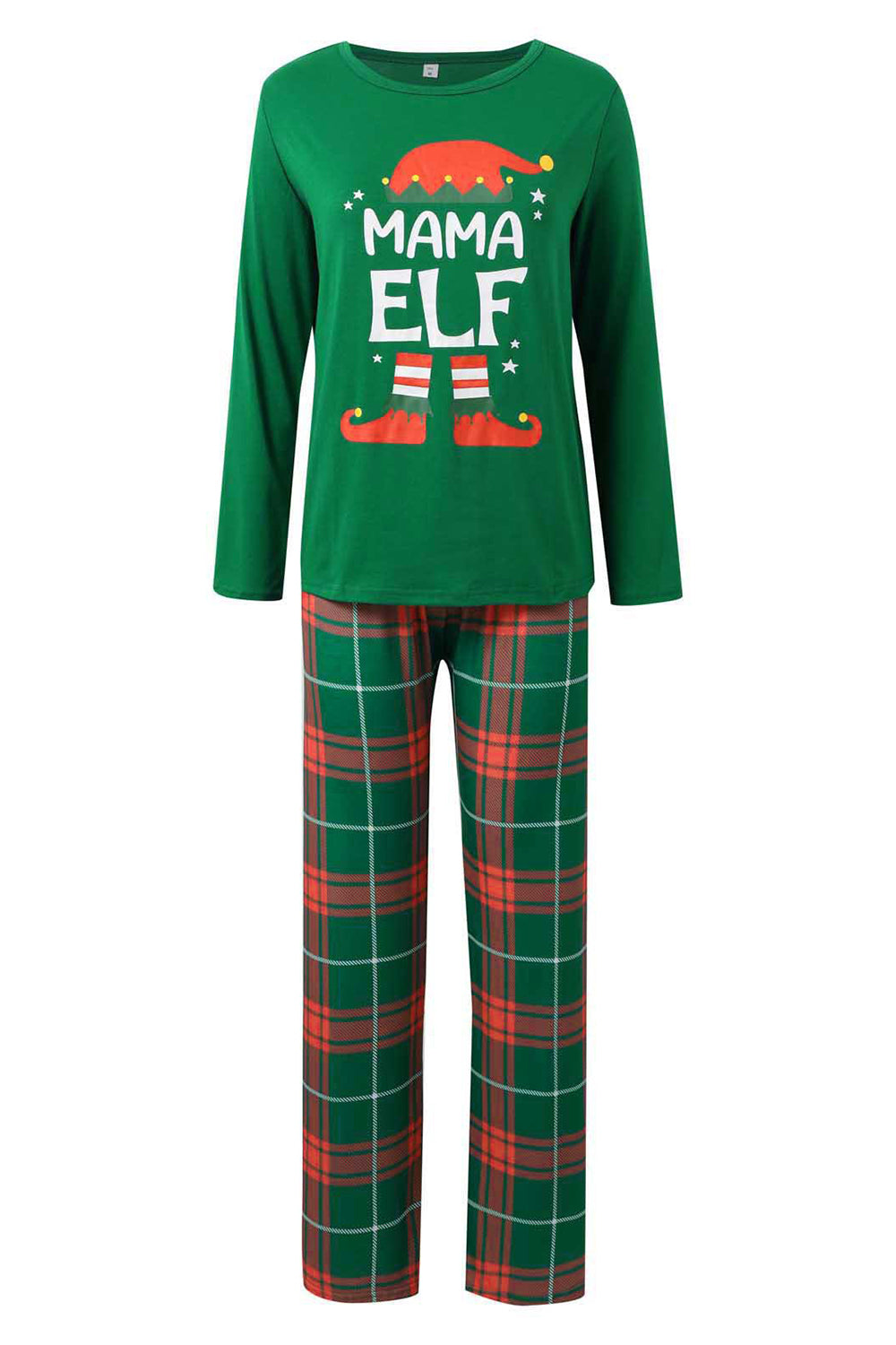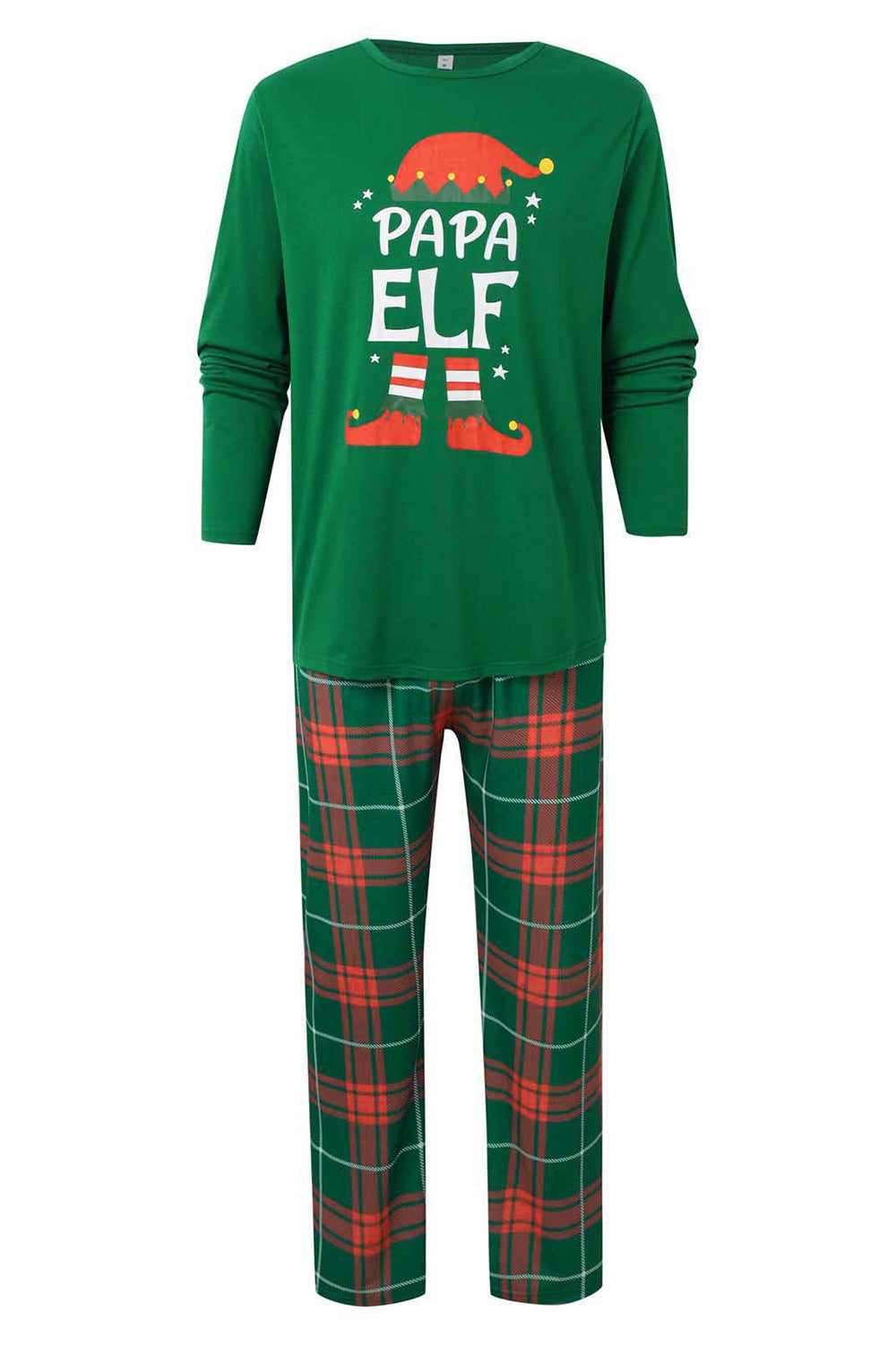 Donkergroene Kerst Geruite Familie Bijpassende Pyjama Set met Ronde Hals