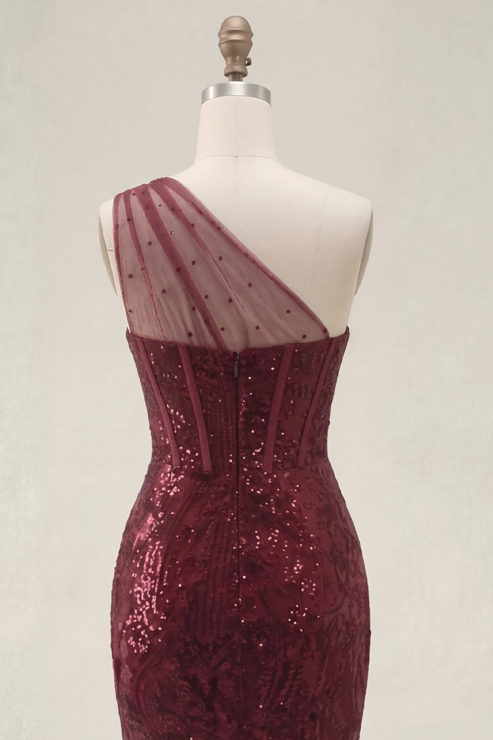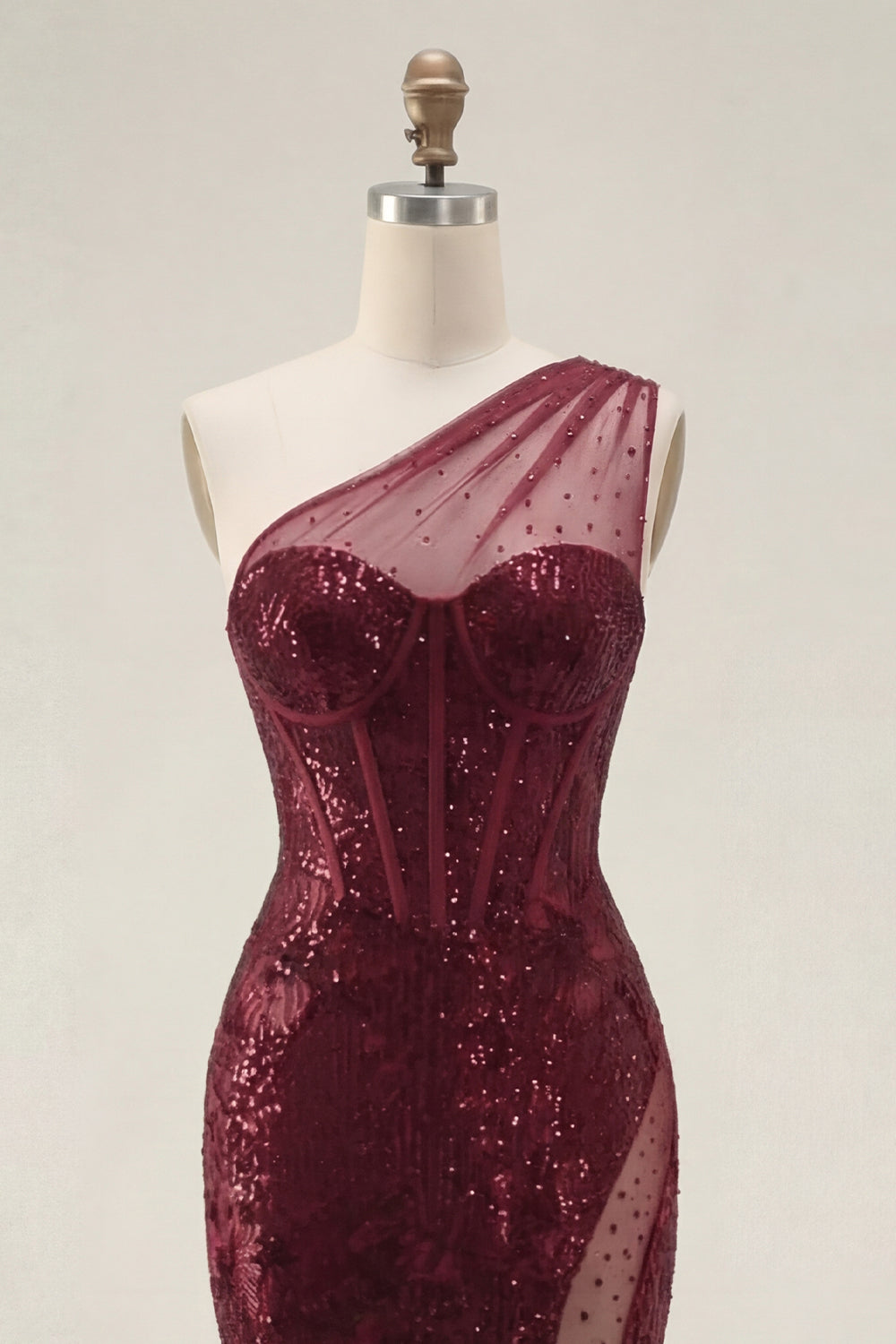 Glinsterende bordeauxrode pailletten zeemeerminjurk met één schouder lange galajurk met split