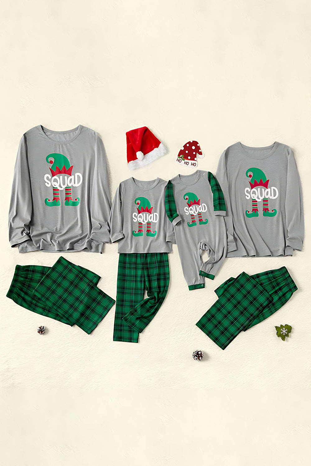 Grijs Groen Geruite Print Kerst Familie Bijpassende Pyjama Set