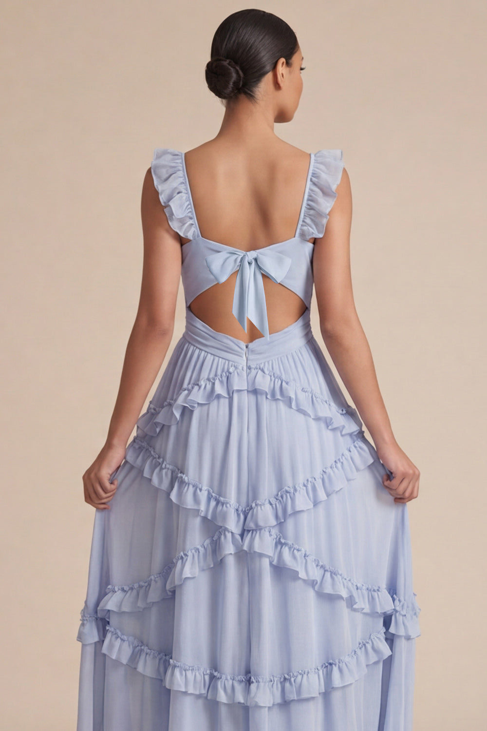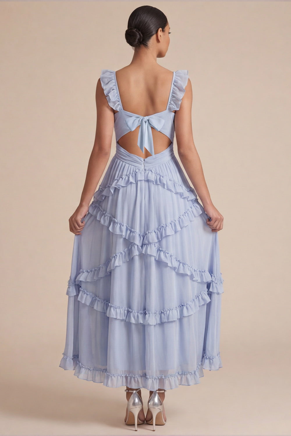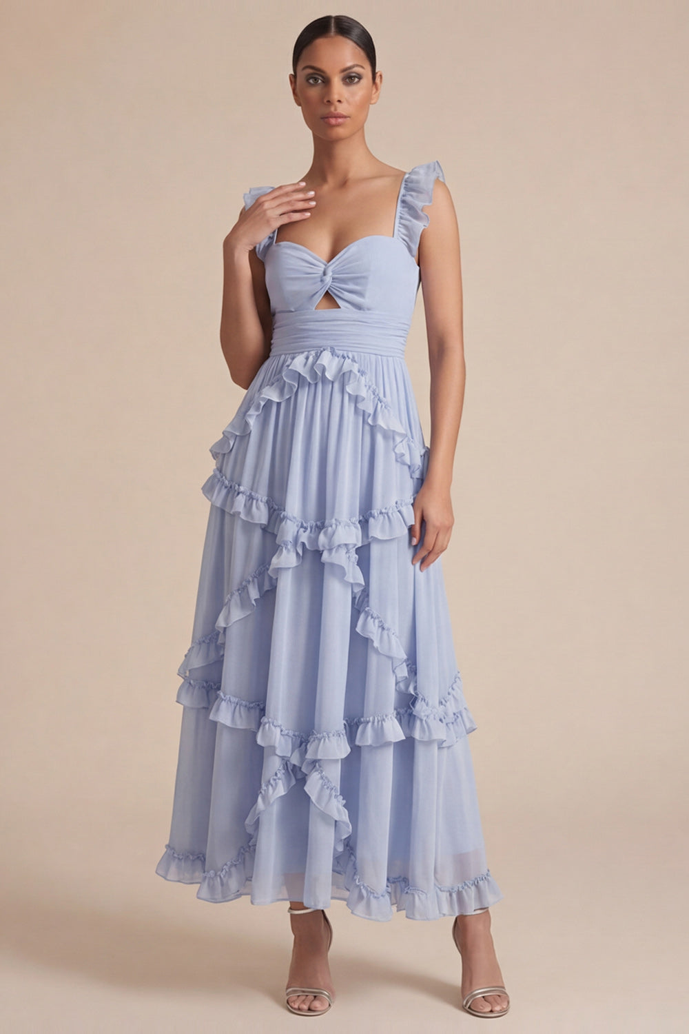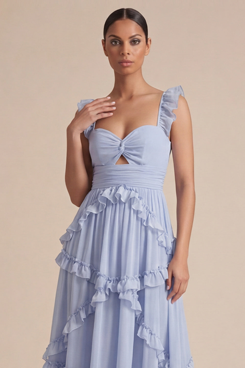 Lichtblauwe A-lijn gerimpelde midi bruiloftsjurk