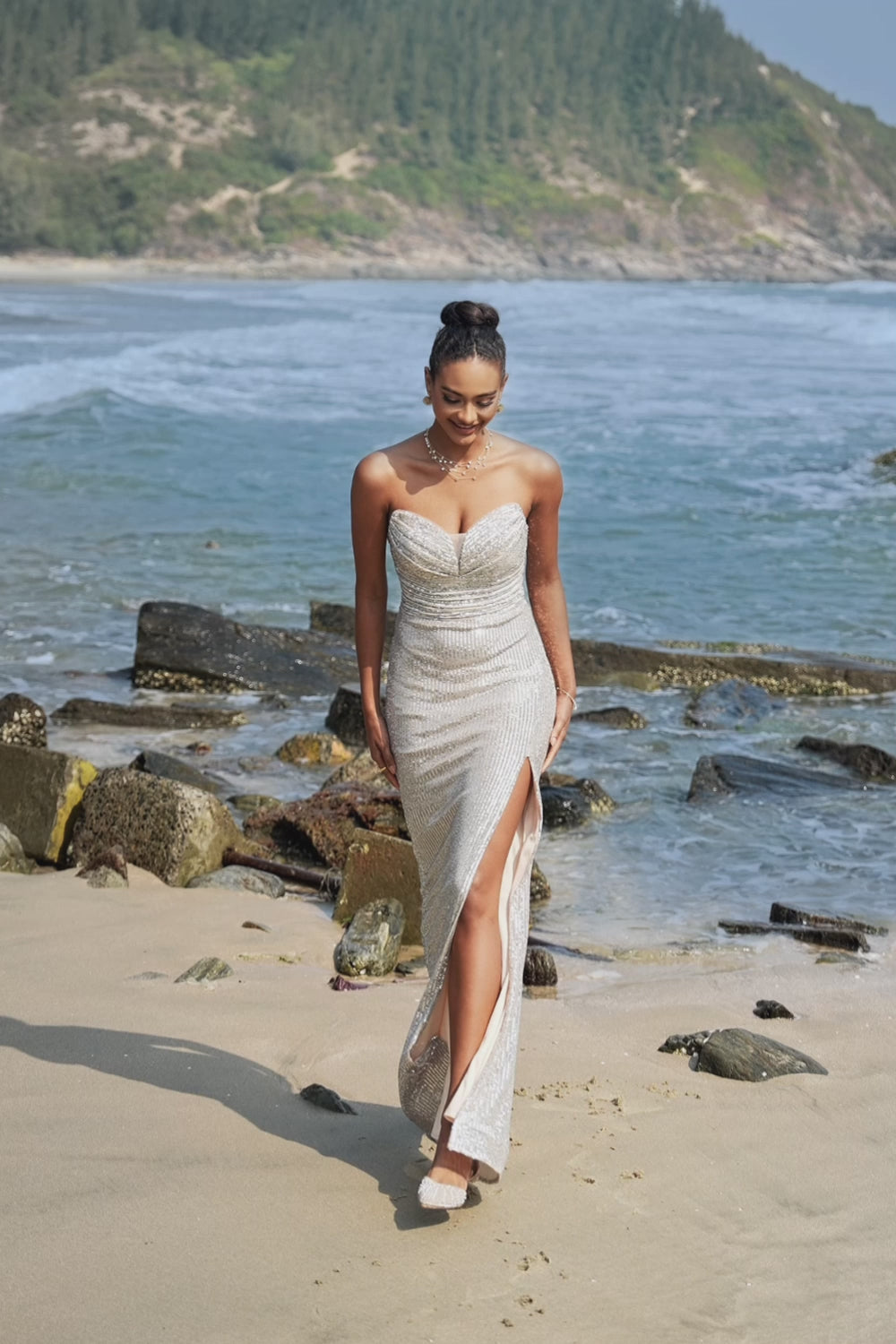 Sprankelende strapless zeemeermin zwarte pailletten avondjurk