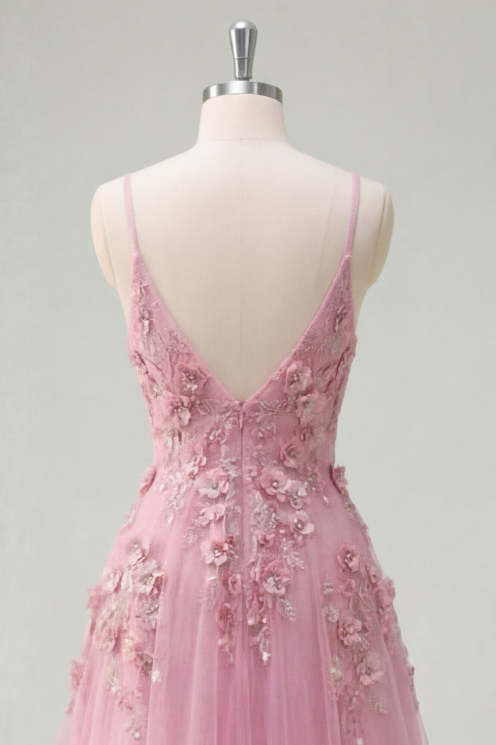 Taro A-Line Spaghetti Straps Lange Galajurk met geappliqueerde 3D-bloemen