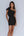 Een lijn fluwelen off-shoulder geplooide korte jurk met zwarte stropdas