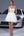 Uit de schouder een lijn gegolfde witte afstudeerjurk
