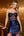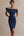 Navy Bodycon Midi werkjurk met vierkante hals en korte mouwen