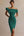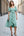 A-lijn mintgroene midi-satijnen werkjurk met vierkante hals met ruches