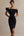A Line zwarte satijnen midi-werkjurk met vierkante hals en ruches