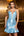Hemelsblauwe satijnen gerimpelde A Line lange werkjurk
