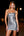 Metallic blauwe paarse bodycon uitgesneden jurk met ruches voor thuiskomst