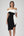 Korte bodycon ivoor en zwarte cocktailjurk met ruches