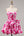 Roze bloemen gerimpelde lange bruidsmeisjesjurk met split