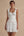 Witte A-lijn satijn vierkante hals midi repetitie dinerjurk