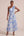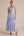 Een lange bruidsmeisjesjurk met blauwe chiffon bedrukte lijn met bloemen en ruches
