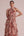 Perzikgeplooide, bloemen lange jurk met ruches en split