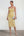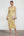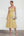 Gele, lange mouwen kanten midijurk met hoge hals en split