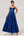 Blauwe A-lijn spaghettibandjes brokaat korset galajurk met split