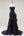 Zwarte gouden zeemeermin pailletten V-hals Open rug lange galajurk met split