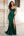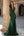 Donkergroene zeemeermin halter satijnen lange galajurk met ruches