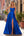 Koningsblauwe A-lijn geplooide sweetheart satijnen lange galajurk met split