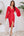 Rode zeemeermin ronde hals lange feestjurk met lange mouwen
