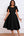 Zwarte A-lijn wikkeljurk met lange mouwen en lange mouwen