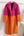 Fuchsia en oranje pluizige lange jas van imitatiebont