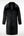 Pluizige zwarte lange overjas van imitatiebont met riem