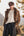 Witte pluizige imitatiebont lange mouwen heren vest jas