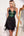 Sprankelende zwarte korset spaghettibandjes lange galajurk met split
