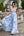 Wit Blauwe Bloem A Line Lange Galajurk met Gegolfde Mouwen