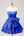 Blauwe galajurk met ruches en ruches met één schouder