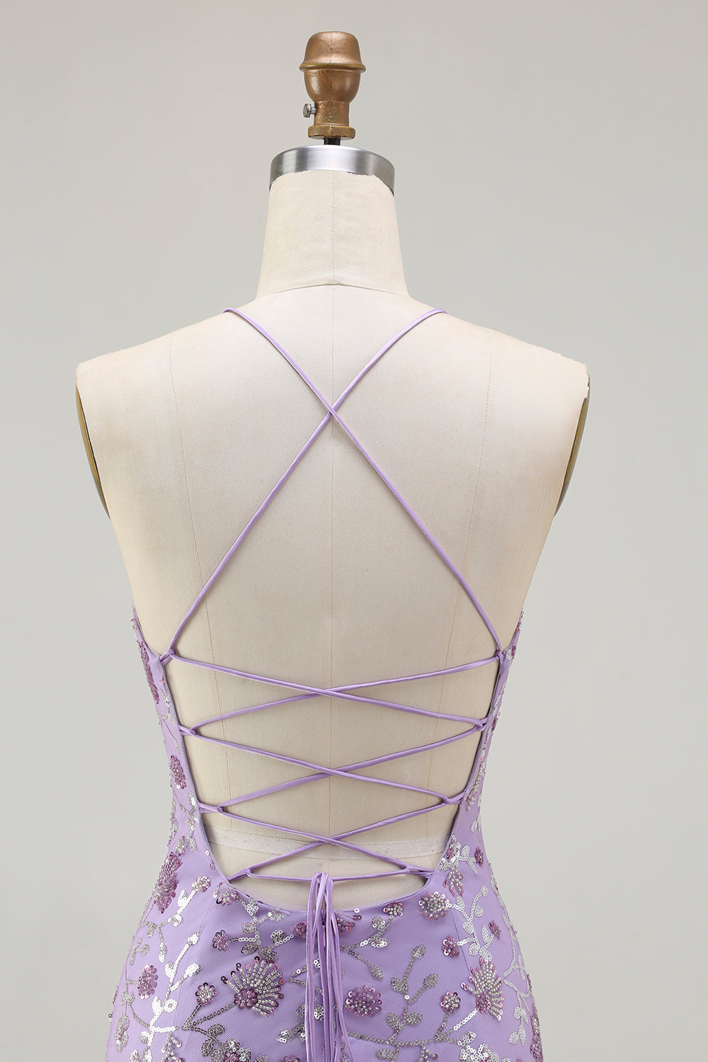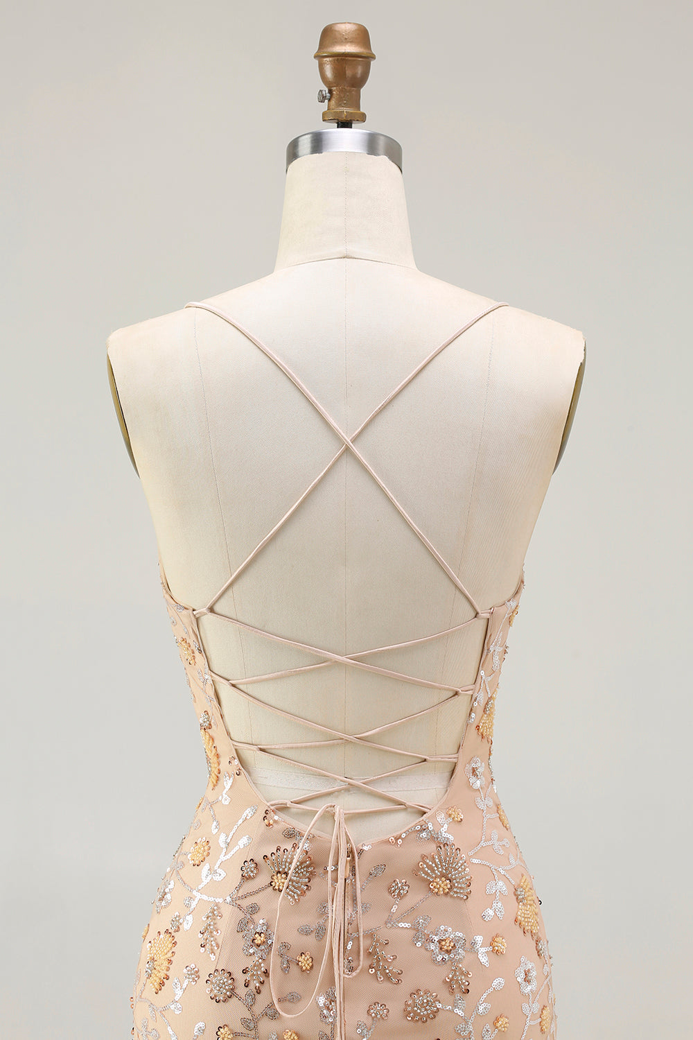 Champagnekralen meerminnen pailletten veter achterop lange galajurk met split