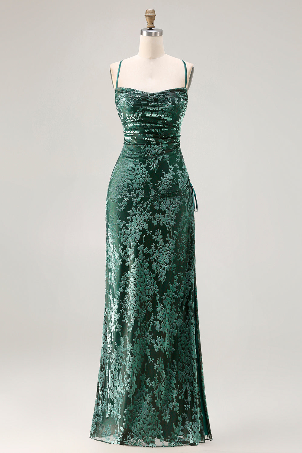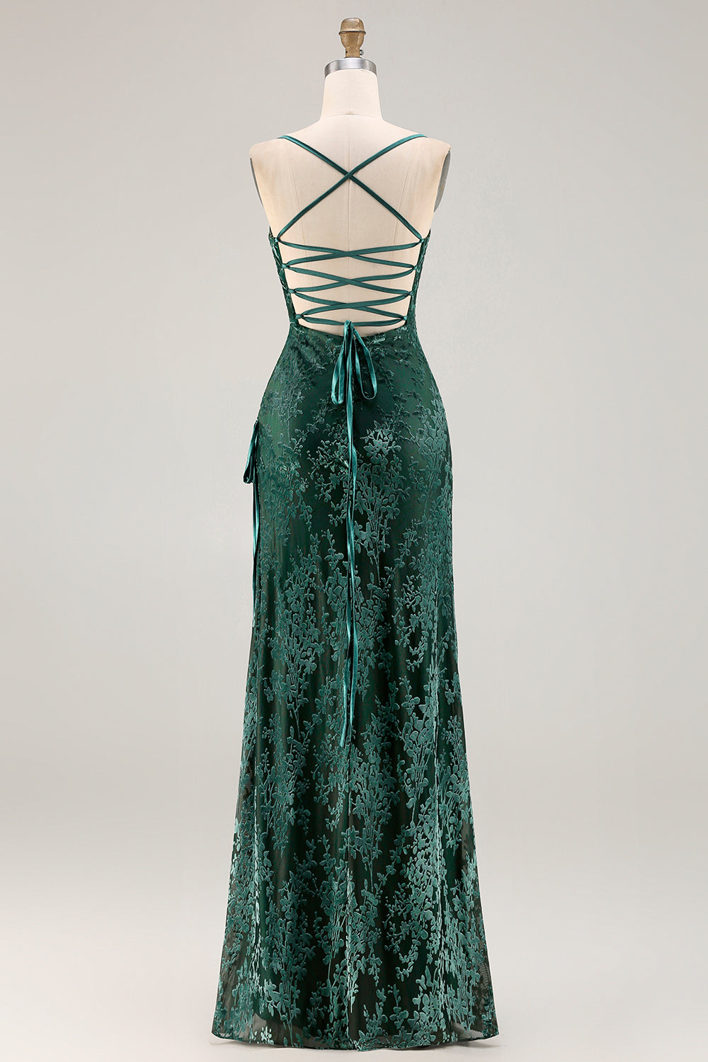 Donkergroene fluwelen schede fluwelen burnout lange galajurk