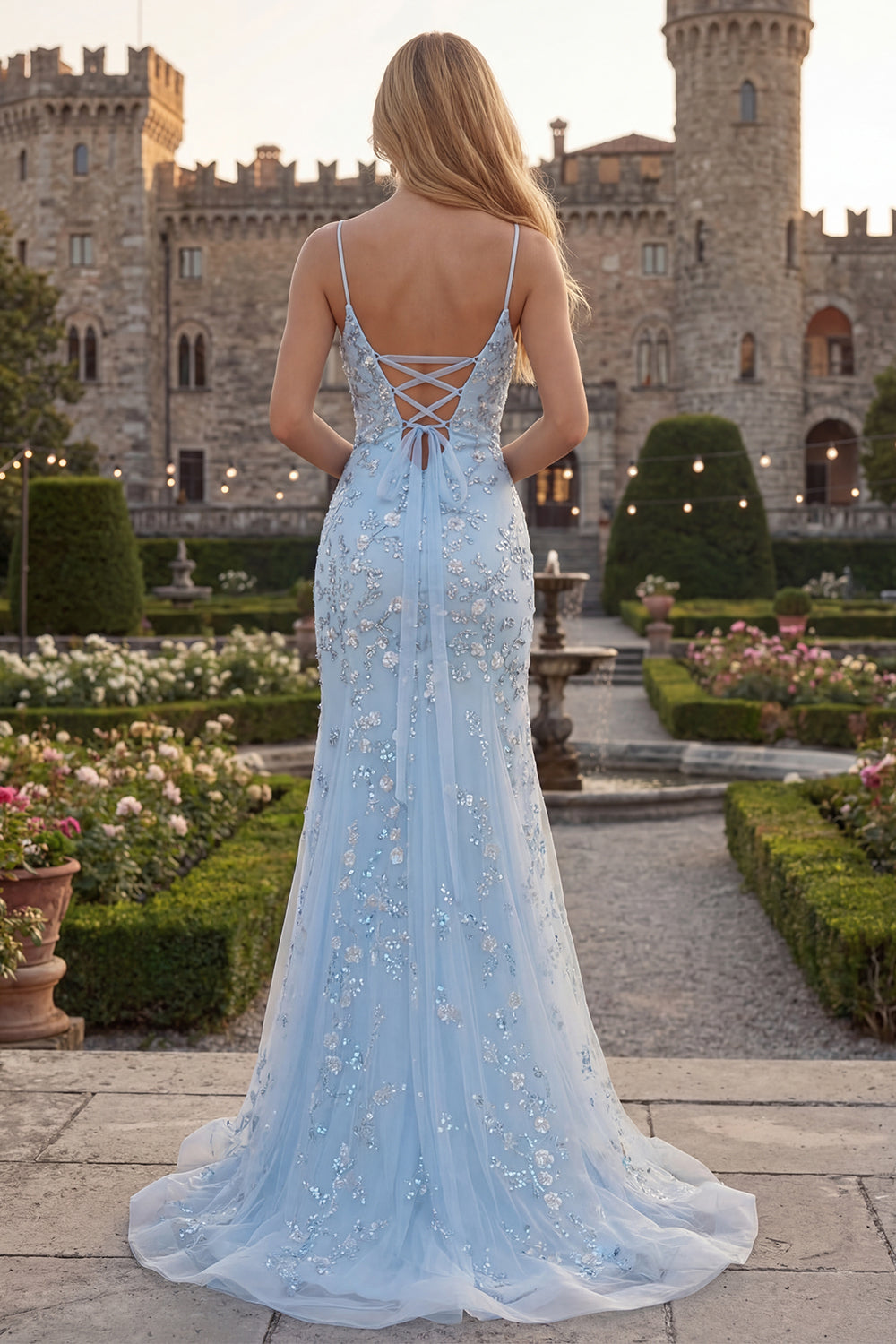 Mermaid Blush Spaghetti Bandjes Galajurk met Appliques