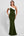 Donkergroene satijnen A-lijn galajurk met ruches en split