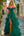 Donkergroene satijnen off-shoulder lange galajurk met split