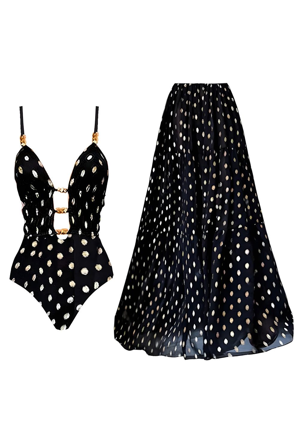 Black White Dots Spaghetti Straps 2-delig uitgesneden badpak met bedekking
