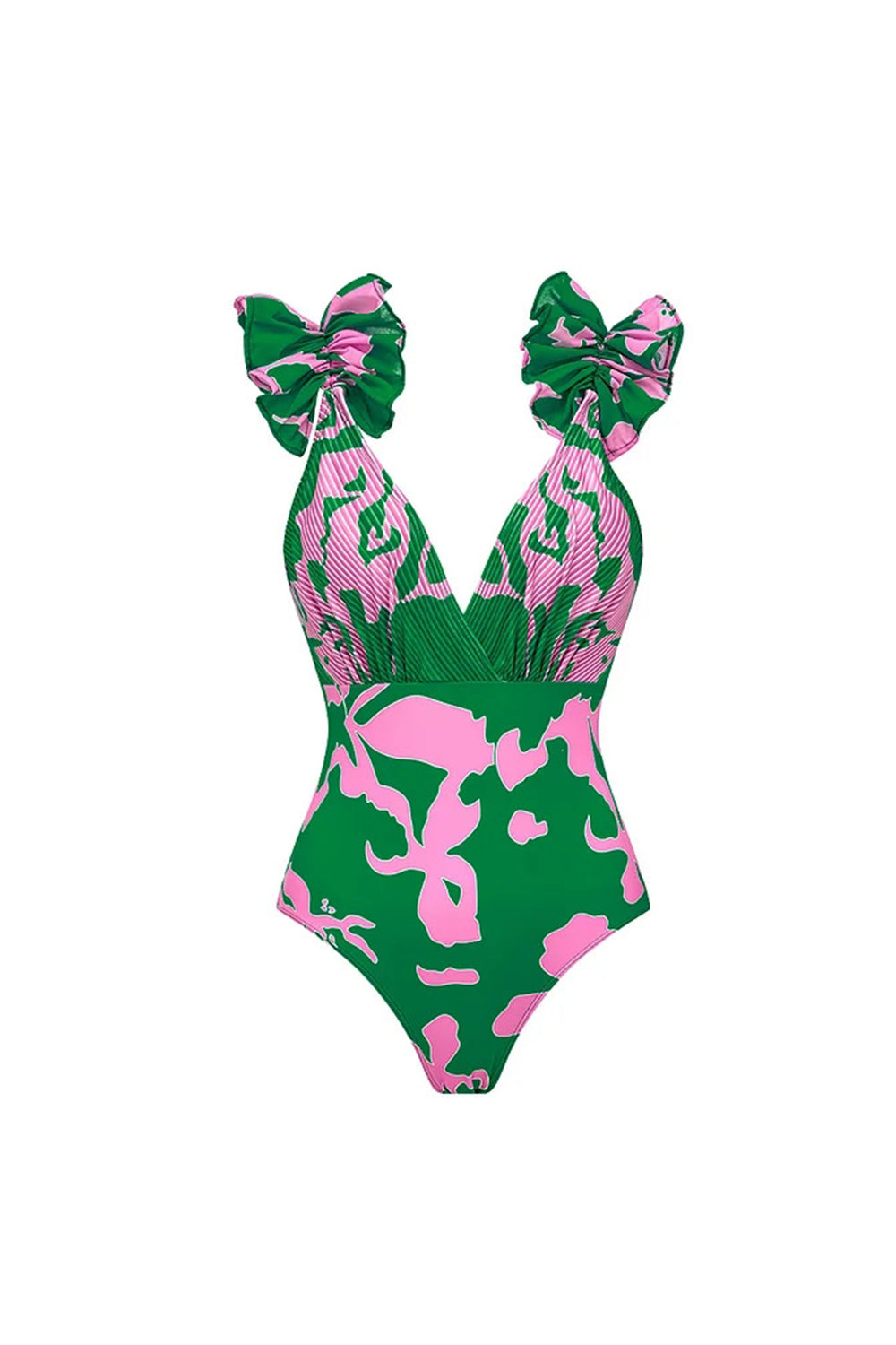 Donkergroen 2-delig geprint bloemenpak met V-hals en overdek