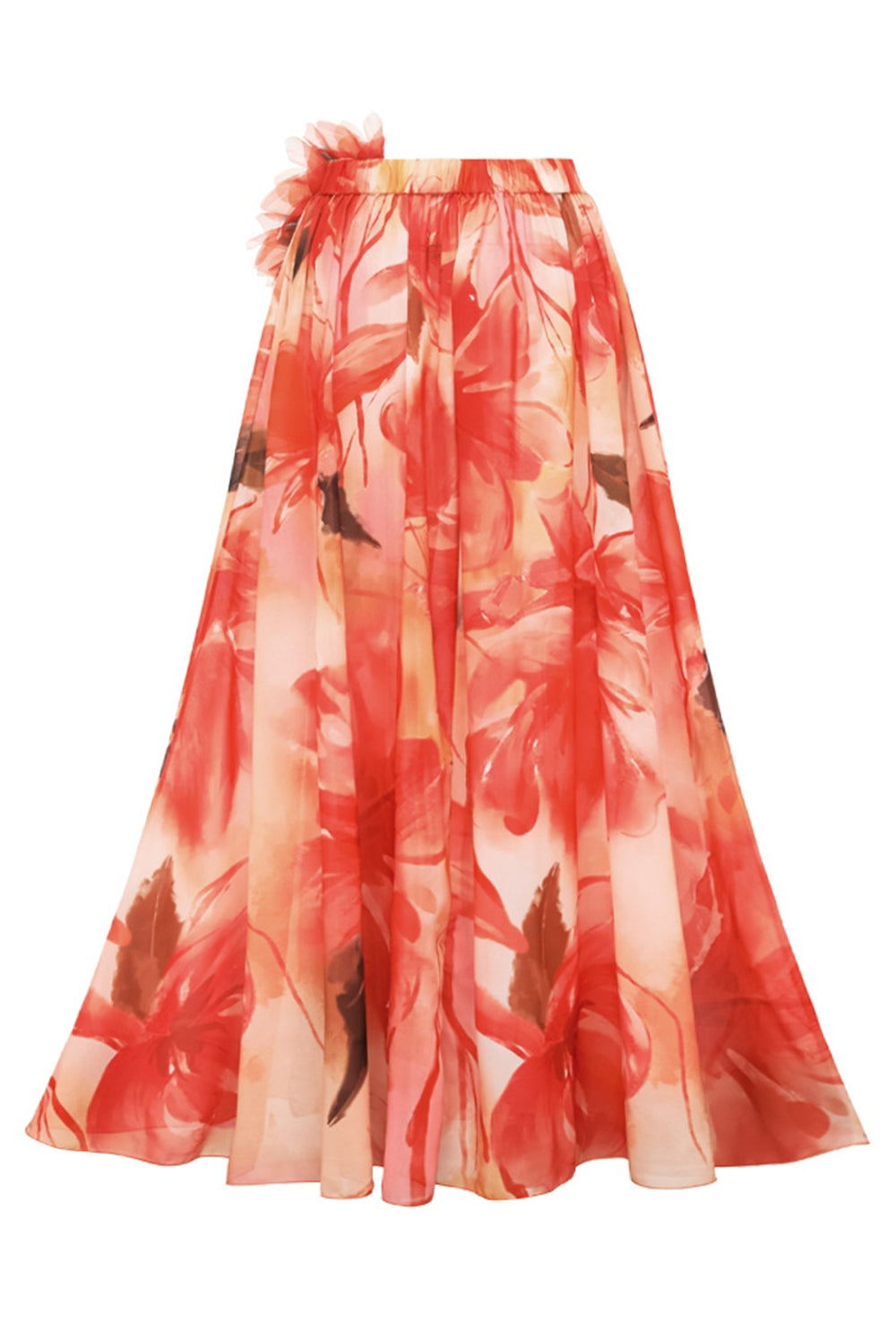 Oranje geruffelde tweedelige V-hals badpak met strandjurk