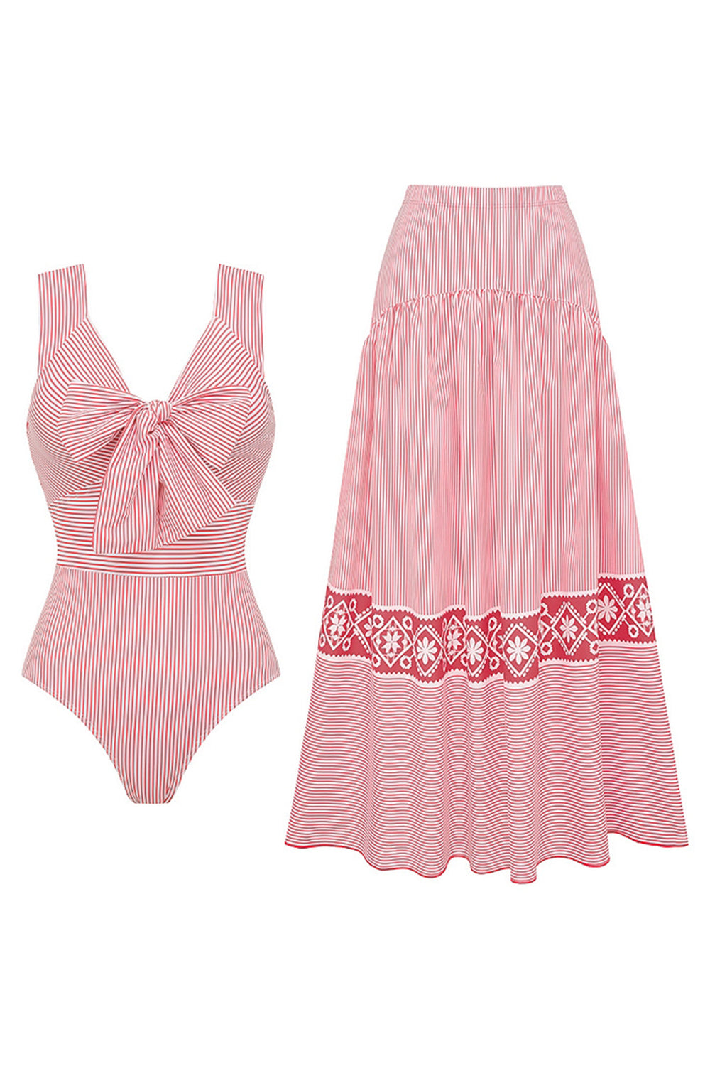 Roodgestreepte Bowknot 2-delige zwemkledingset met strandjurk