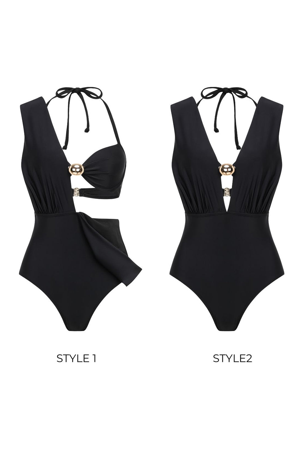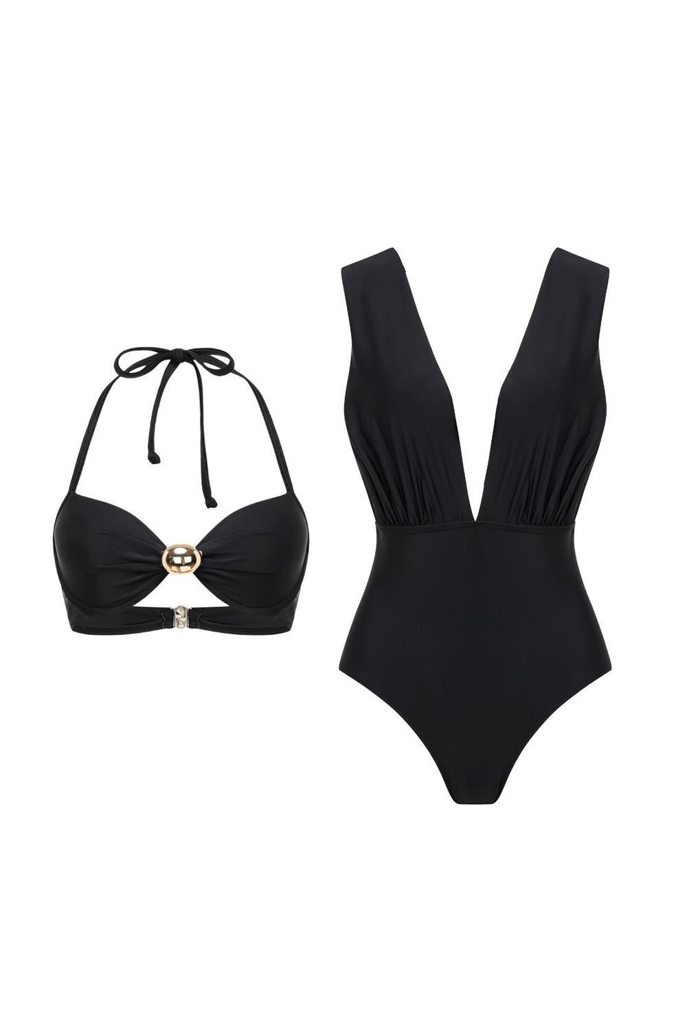 Zwart cabriotisch 3-delig halter badpak met overdek