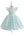 Groene tule bloemenmeisjesjurk met ronde hals en strik