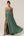 Diepe V-hals matcha lange bruidsmeisjesjurk met ruches