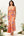 Vierkante hals perzik lange bruidsmeisjesjurk met mouwen