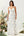 Een lijn diepe V-hals groen bedrukte lange bruidsmeisjesjurk
