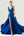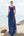 Blauwe asymmetrische col hals satijnen bruidsmeisje jurk met split