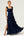 Navy Bloom Schede Halter Nek Satijn Lange Bruidsmeisje Jurk