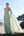 Stoffige salie halter korset gegolfd lang bruidsmeisje jurk met split